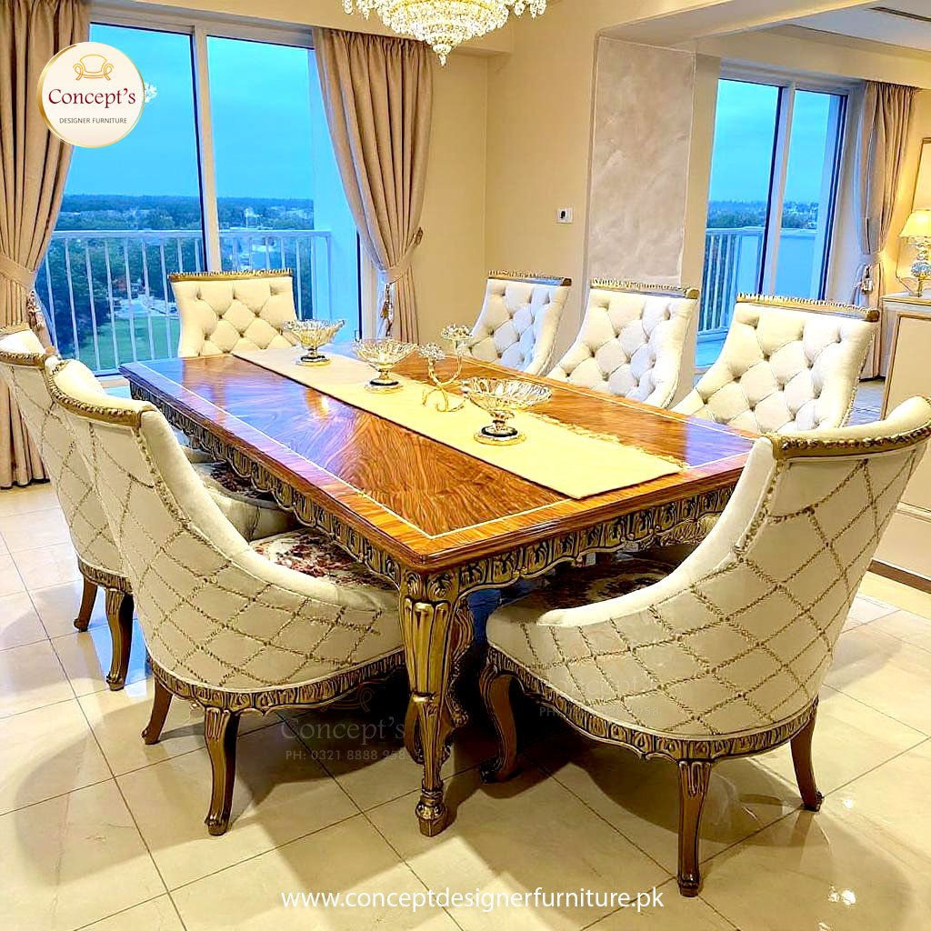Discover timeless sophistication with the Pearl Essence Dining Table, exclusively from Concept Designer Furniture in Lahore. Designed to be the centerpiece of your dining space. Perfect for both modern homes in Pakistan and classic interiors, this luxury dining table in Lahore is crafted for those who appreciate elegance, durability, and exclusivity.